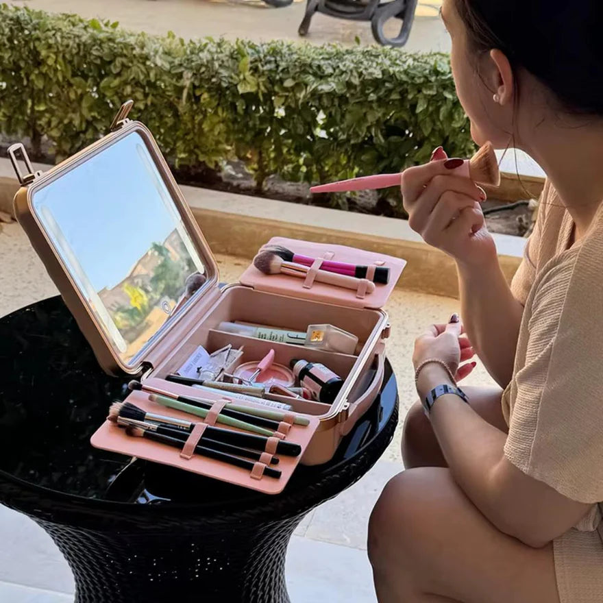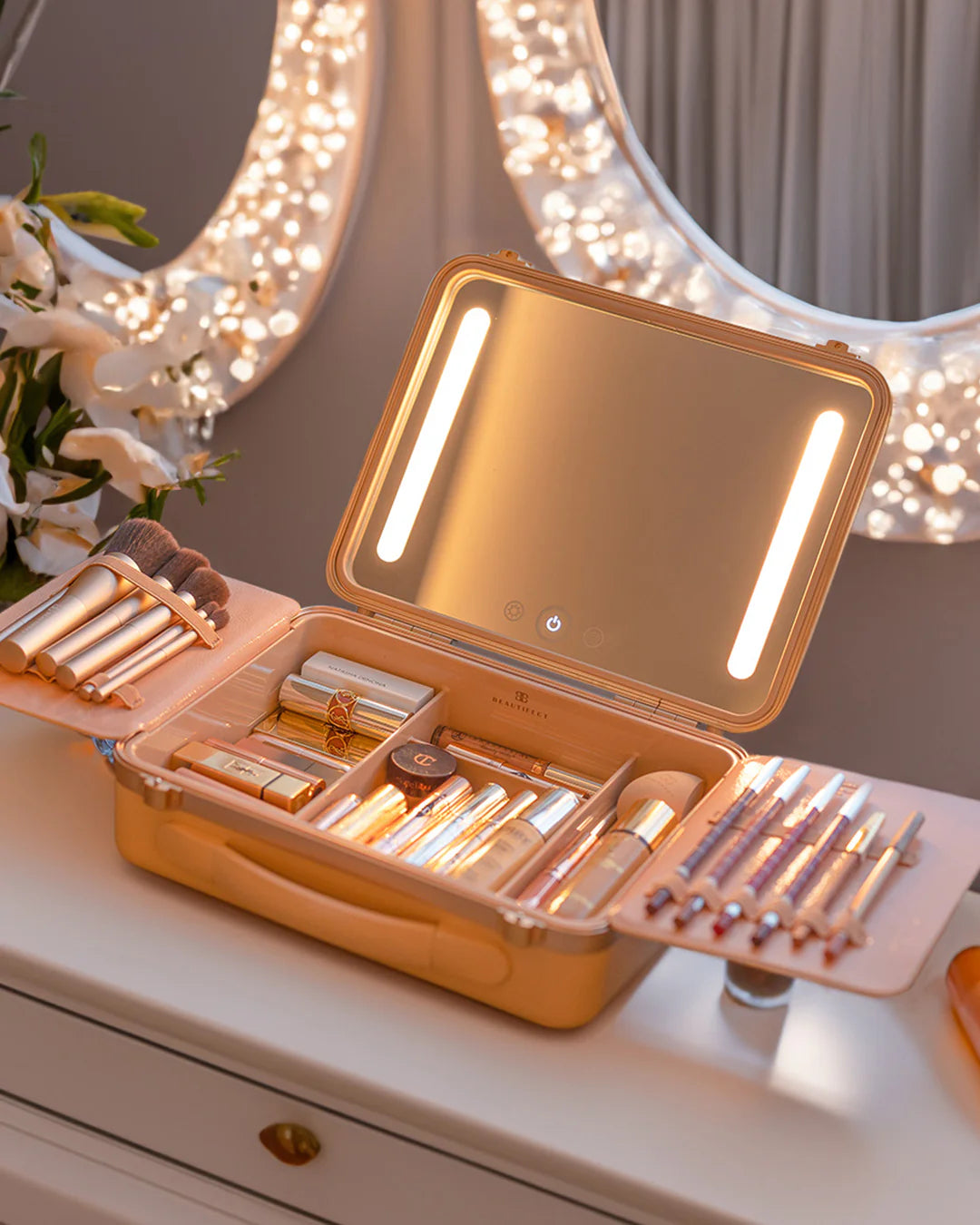 Bewahre deine Produkte stilvoll auf – mit modernen Organizern und beleuchteten Spiegeln.